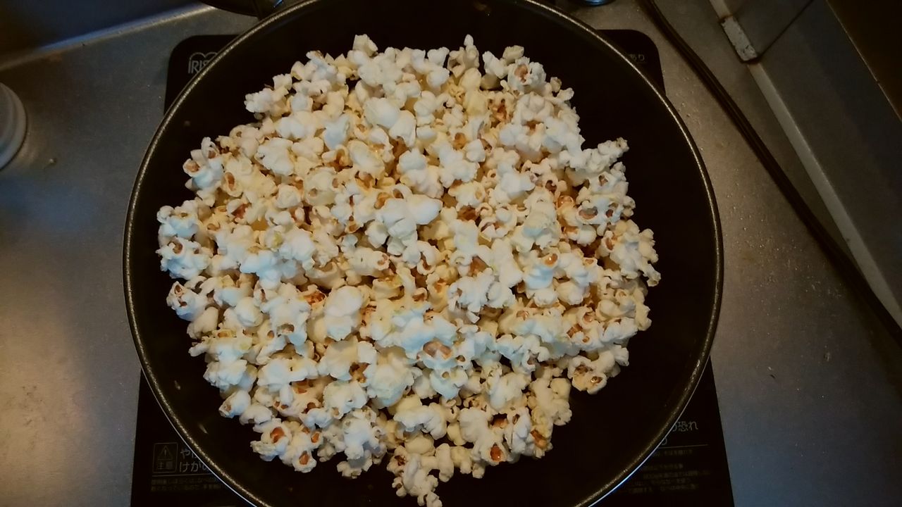 ところで最近、豆のタイプのポップコーンを見かけない気がしませんか? 出来上がったタイプしか見ていない気がします。昔はスーパーとかで簡単に手に入った気がするのですが、今は家の近くの超デカいイオンでも見つかりませんでした。どうやらIHタイプのコンロが普及し、生産数が減っていったようです。どうりで見かけなくなったわけですね~。写真のポップコーンはネットで買いました。5kg分です。先に述べたように結構な頻度で作っていますが、一向に減る機会がありません! 一生食えそうな気もします。幸せです!